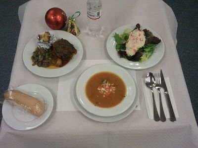 La suculenta carta de platos comienza con la cena de Nochebuena que este año se compone de consomé al Montilla, ensalada de frutas, pechuga de pollo rellena de pasas y orejones al Pedro Ximenez y, de postre, tarta de queso. Así, para el día de Navidad se servirá crema de calabacín, jamoncitos de pavo asado a la naranja, cóctel tropical y tiramisú. Además, todas las comidas especiales de estas fechas irán acompañadas de dulces navideños.