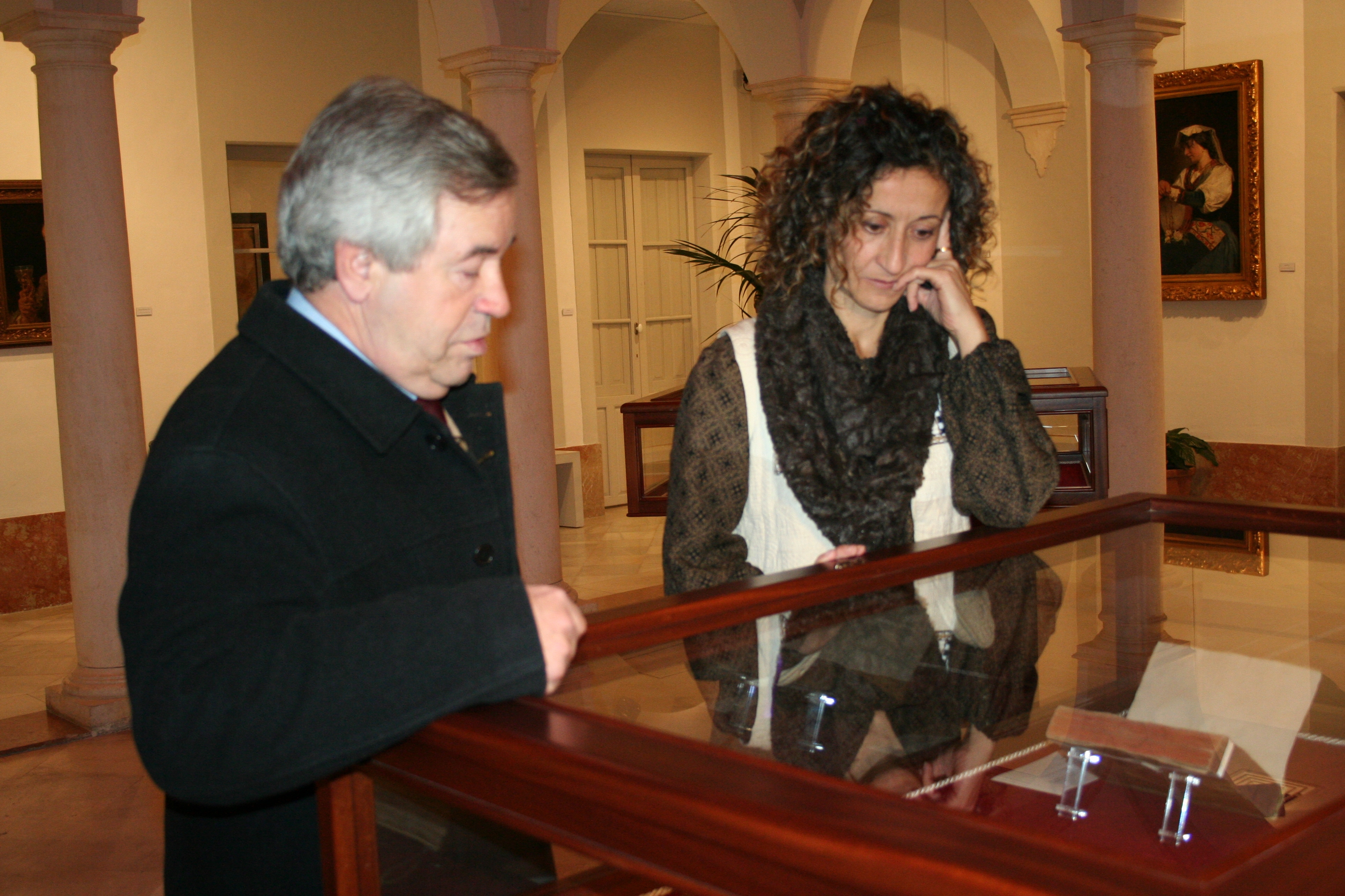 La delegada del área Sociocultural, Conchi Espejo, y el director de la Casa de las Aguas, José Antonio Cerezo, han presentado la exposición bibliográfica que se puede ver durante estos días en la Casa de los Aguas sobre Santa Teresa de Jesús.