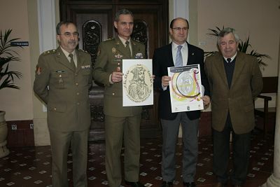 El Alcalde de Montilla, Federico Cabello de Alba, el Coronel Jefe Actal. de la BRIMZ Guzmán el Bueno X, Aroldo Lázaro Sáenz, el Teniente Coronel Manuel Moreno Castro y José Antonio Cerezo, director de la Casa de las Aguas, han presentado en el día de hoy el I Premio Internacional de Pintura Gran Capitán.