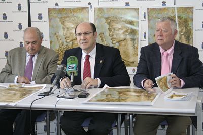 El Alcalde de Montilla, Federico Cabello de Alba, junto con Joaquín Criado y José Cosano, presidente y censor respectivamente de la Real Academia de Córdoba, han presentado esta mañana la sesión extraordinaria que esta institución va a celebrar en el Castillo de Montilla el próximo 24 de abril.