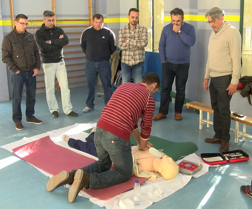 Durante la jornada, además de formación teórica, se ha ejercitado la práctica de los conocimientos adquiridos. Para ello, se han practicado las maniobras manuales de resucitación cardiopulmonar en muñecos y se ha hecho uso del desfibrilador automático, indicado para el uso de personal no sanitario. Tras colocar los electrodos en el paciente, este instrumento permite determinar el tipo de ritmo cardíaco y aconseja a los asistentes separarse para emitir la descarga eléctrica, o bien, aconseja realizar compresiones torácicas.