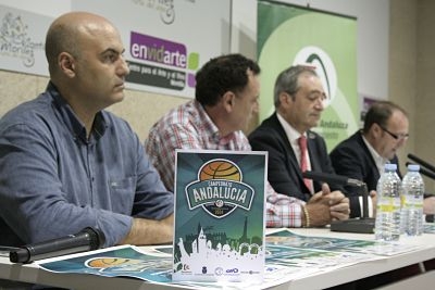El concejal de Deportes de Montilla, José Manuel Márquez, el presidente de la Federación Andaluza de Baloncesto, Antonio de Torres y el presidente del Club Baloncesto Montilla, José Antonio Madrid, han presentado esta mañana en el Centro Envidarte el Campeonato de Andalucía de selecciones provinciales infantil masculino, que se celebrará en Montilla del 31 de octubre al 2 de noviembre.